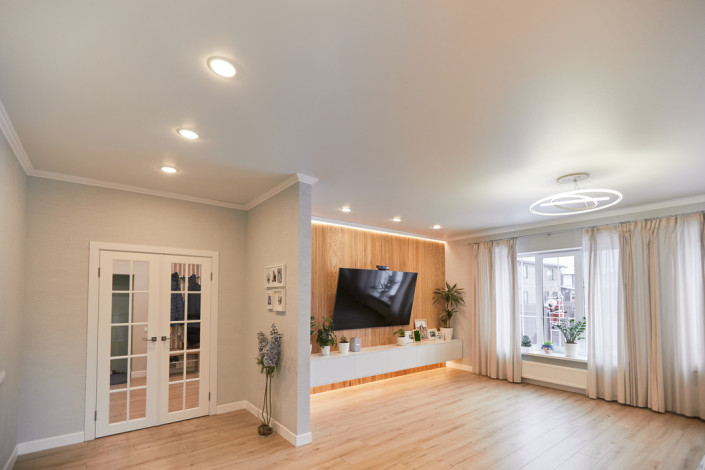 Конечно, мы предоставляем дополнительные скидки новоселам, молодоженам, пенсионерам. Еще у нас есть другие персональные предложения для клиентов на разные материалы, комплектующие, светильники в зависимости от количества. На натяжные потолки имеются различные акции.